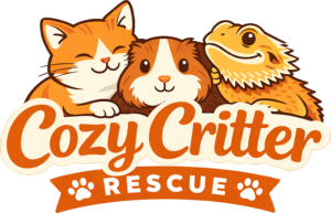 Cozy Critters Rescue was created to provide a safe, compassionate space for these animals while they wait for their forever homes. We focus primarily on small animals and exotics, along with cats, giving them proper housing, nutrition, enrichment, and medical care—often for the first time in their lives.
